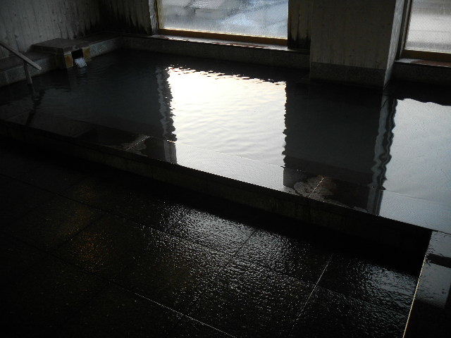 この温泉旅館の、男用の共同温泉風呂。屋内(室内)温泉風呂、温泉露天(野外)風呂、サウナ(sauna)が、一つずつあります。女用の共同温泉風呂も、ほとんど似た感じだと思います。