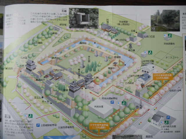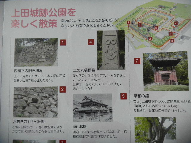 写真以下2枚。上田(ueda)城(castle)跡(上田(ueda)城(castle)の跡)の、パンフレット(leaflet)より。。。