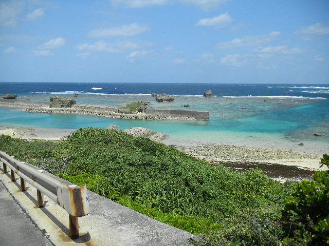 写真以下。宮古(miyako)島に到着し、空港で、レンタカーを借りると(レンタカー会社(car rental company)から、自動車を借りると)、まず、宮古(miyako)島の島内(宮古(miyako)島の南部)を、driveしました。
