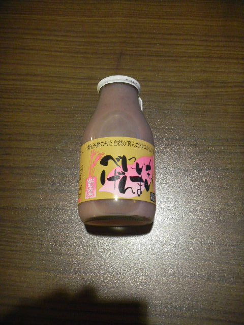 彼女が飲んだ、紅芋、玄米drink。紅芋は、沖縄(okinawa)県で、よく食べられている、紫色や赤色の、サツマイモ(sweet potato)(紫芋とも呼ばれる)又は山芋科の芋です。