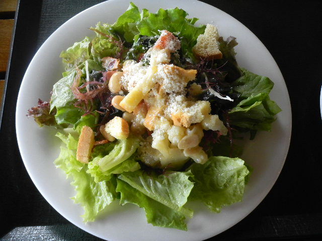 野菜サラダ(salad)。サラダ(salad)には、マンゴー(mango)のドレッシング(dressing)もかけています。サラダ(salad)は、もう一杯、食べました。