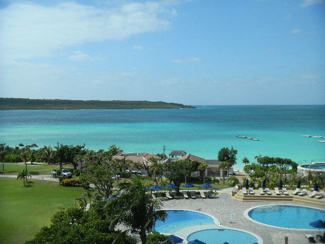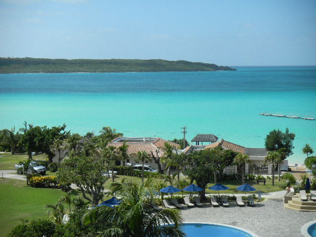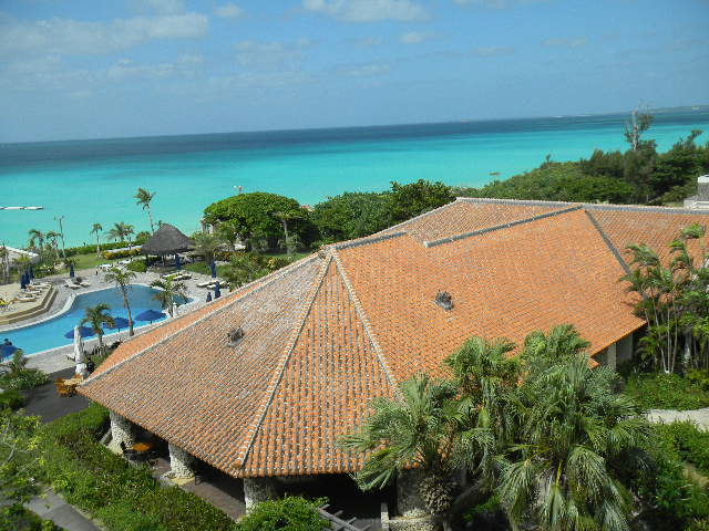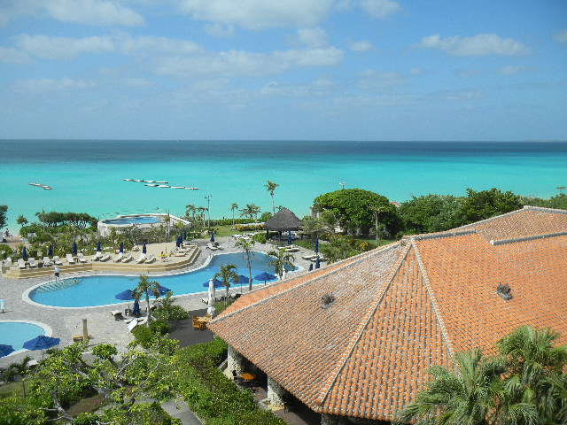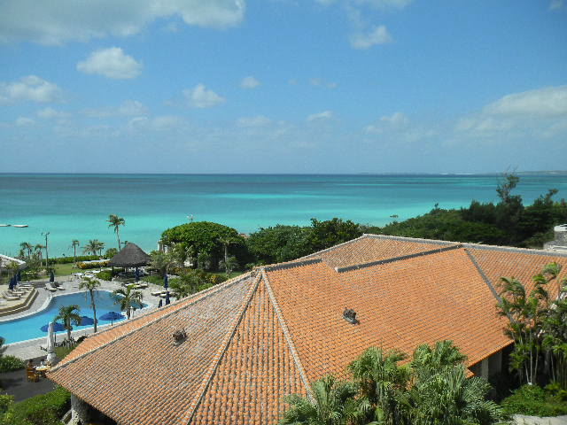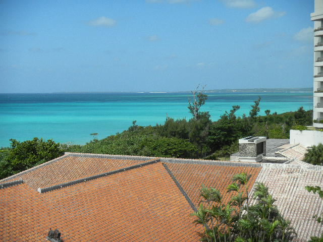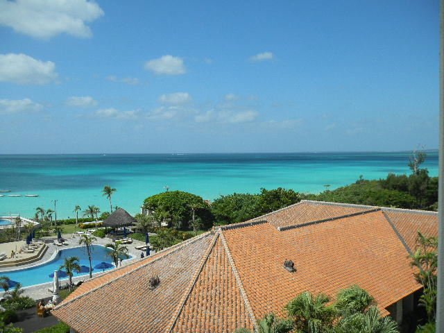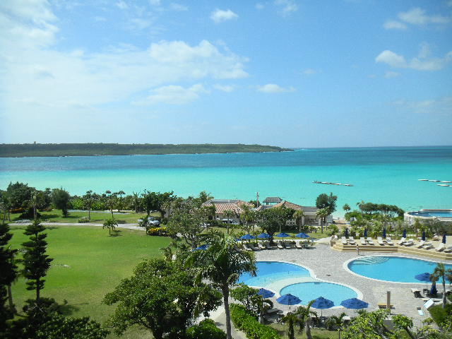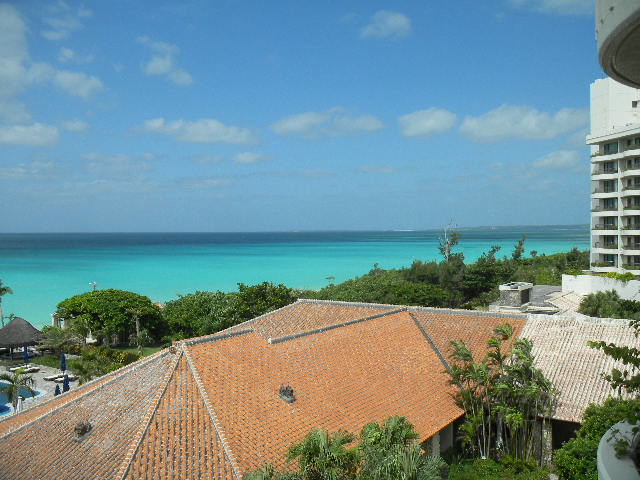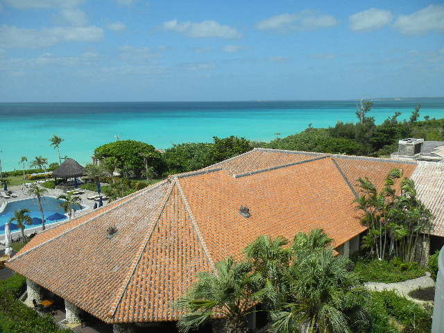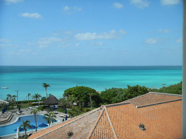 写真以下。シュノーケリング(snorkeling)を楽しんだ後は、ホテルに戻って来て、ホテルの客室で、バルコニー(balcony)から、とても美しい、海の景色を眺めたり、ベッド(bed)から、窓越しに、海の景色を眺めながら昼寝をしたりして、のんびりと過ごしました。この時、私達が、宿泊した、東急(tokyu)リゾート(resort)ホテルは、与那覇前浜(yonaha maehama)ビーチ(beach)(下の補足説明参照)に面して建つ、リゾート(resort)ホテルで、客室の窓やバルコニー(balcony)から、与那覇前浜(yonaha maehama)ビーチ(beach)の、とても美しい、海の景色を楽しむ事が出来ます。