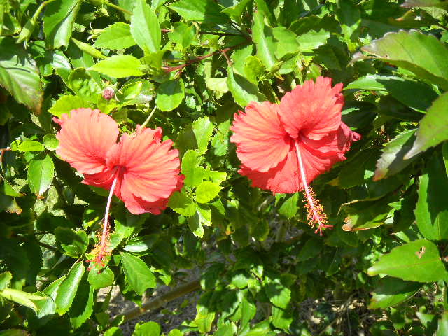 写真以下2枚。ホテルの駐車場にて。。。ハイビスカス(hibiscus)。沖縄(okinawa)では、アカバナー(akabanaa)と呼ばれています。沖縄(okinawa)を代表する花の一つです。