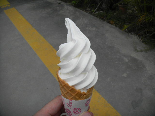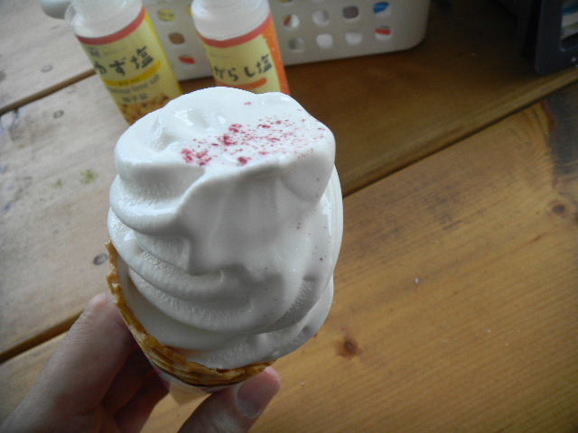 写真以下4枚。雪塩(宮古(miyako)島産の、高品質な塩)を使った、ソフトクリーム(soft serve)。