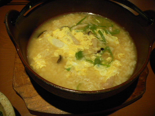 鶏(鶏肉)、雑炊(粥)。美味しかったですが、何か、沖縄(okinawa)独特の物を、少し期待して頼んだら、普通の、日本料理(日本、本土の料理)の、鶏(鶏肉)、雑炊(粥)でした(普通の、日本料理(日本、本土の料理)の、鶏(鶏肉)、雑炊(粥)と、全く、同じでした)。