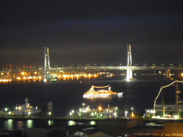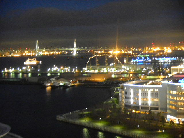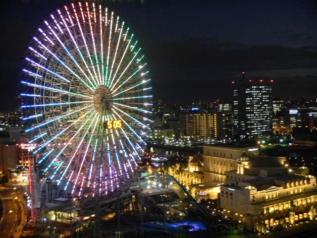 これは、前に、kjでアップ(upload)した写真の、再利用。写真中央部の、最上部が、青く(水色)に光っている高層ビルは、この時、私達が宿泊した、Yokohama Bay Hotel Tokyu(横浜の都心部の海沿いの、高級classのホテルの一つ)です。写真右端の、大きな観覧車は、Cosmo Clock。かつて、世界最大の観覧車であった、大きな観覧車です。