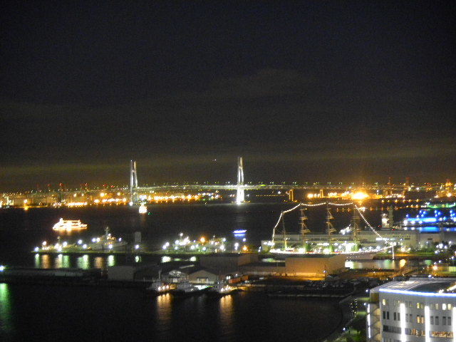이것은, 전에, kj로 업(upload) 한 사진의, 재이용.사진 중앙부의, 최상부가, 푸르고(물색)에 빛나고 있는 고층빌딩은, 이 때, 저희들이 숙박한, Yokohama Bay Hotel Tokyu(요코하마의 도심부의 해안의, 고급 class의 호텔의 하나)입니다.사진 우단의, 큰 관람차는, Cosmo Clock.일찌기, 세계 최대의 관람차인, 큰 관람차입니다.