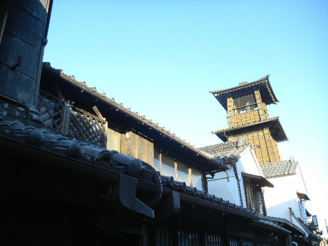 写真以下2枚。時の鐘。19世紀末に再建された物ですが、江戸(edo)時代(17世紀から19世紀半ば)の様式に従って建てられています。川越(kawagoe)の旧市街を象徴する建物となっています。