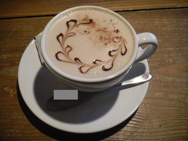 사진 이하 2매(스푼(spoon)에, 나의 얼굴 같은 물건이, 비쳐 버렸으므로, 프라이버시(privacy) 보호 (위해)때문에, 수정..뭐, 수정할 정도의 물건은 아닙니다만...).이 때, 내가, 이 카페(cafe)에서 마신, 음료.핫·초콜릿(hot chocolate).맛있었습니다.덧붙여서, 이 때, 그녀도, 핫·초콜릿(hot chocolate)을 마셨습니다.