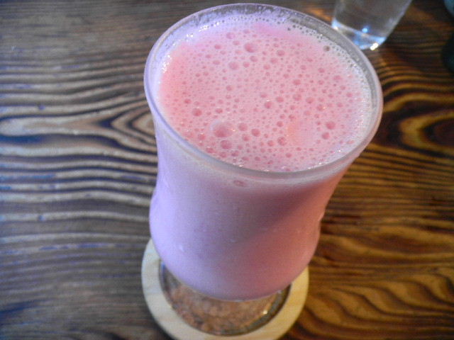 彼女が、この時、さぼうる(sabouru)2で飲んだ、飲み物。苺ジュース(juice)。ちなみに、この時、彼女は、既に、この日の昼食を済ませていました。