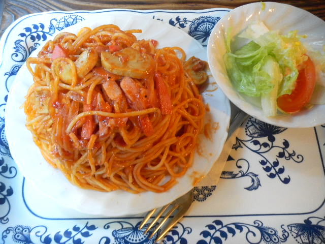写真以下3枚。私が、この時、さぼうる(sabouru)2で食べた、かなり遅目の(午後4時近くに食べた(この日は、昼食時間帯に、食事をする(昼食を食べる)暇がありませんでした))、この日の昼食。ナポリタン(Naporitan・ Napolitan)。ナポリタン(Naporitan・ Napolitan)は、庶民的な、洋食(日本で、近代以降、日本に合う様に、(日本人の視点からすれば)改良された西洋料理)の一つで、(通常は)ケチャップ(tomato ketchup)を使った、パスタ(spaghetti)料理です。ちなみに、私は、この時は、飲み物は、コーヒー(coffee)を飲みました。さぼうる(sabouru)の、ナポリタン(Naporitan・ Napolitan)は、中々、美味しいと思います。