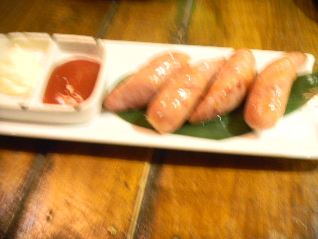 アグー(agu)豚肉(沖縄(okinawa)県の高級豚肉)の、ソーセージ(sausage)。