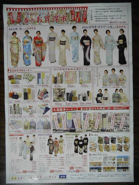 사진 이하 2매.우리 집의 신문의, 끼워넣어 광고지 광고(정기 구독하고 있는 신문에 끼워져 오는 광고)로부터...신쥬쿠(도쿄의 주요한 비즈니스(business) 지구의 하나임과 동시에, 도쿄 최대급의 번화가의 하나.도쿄도심부의 서부에 위치한다)의, keio plaza 호텔에서, 현재, 행해지고 있는(1월 20일부터 1월 22일까지 행해지고 있다), 여성취향의, 옷(기모노)(일본의, 전통옷)의, 세일(sale)의, 광고.덧붙여서, 신쥬쿠는, 도쿄의, 대규모 번화가안에서, 우리 집에, 가장 가까운 번화가의 하나입니다.