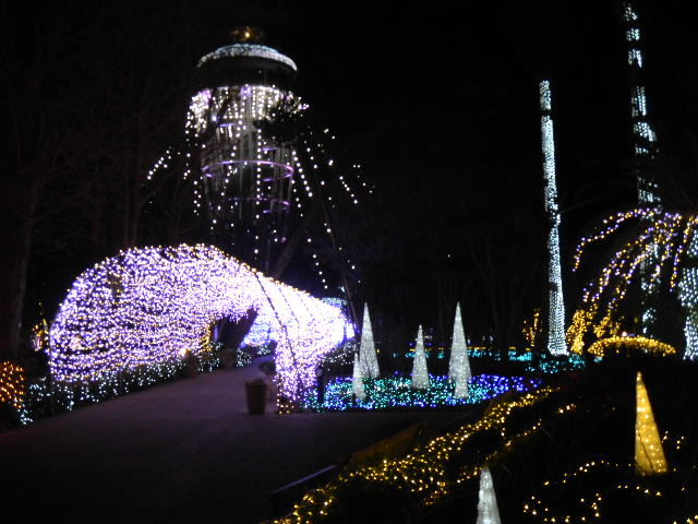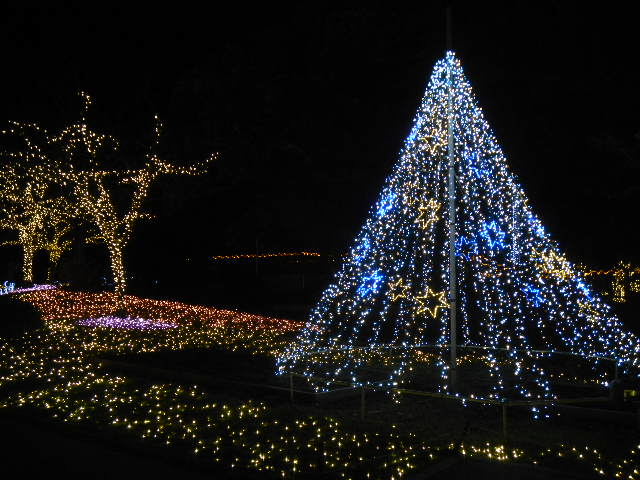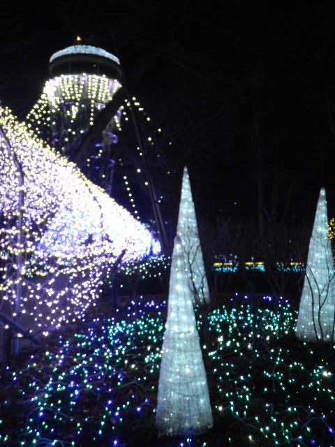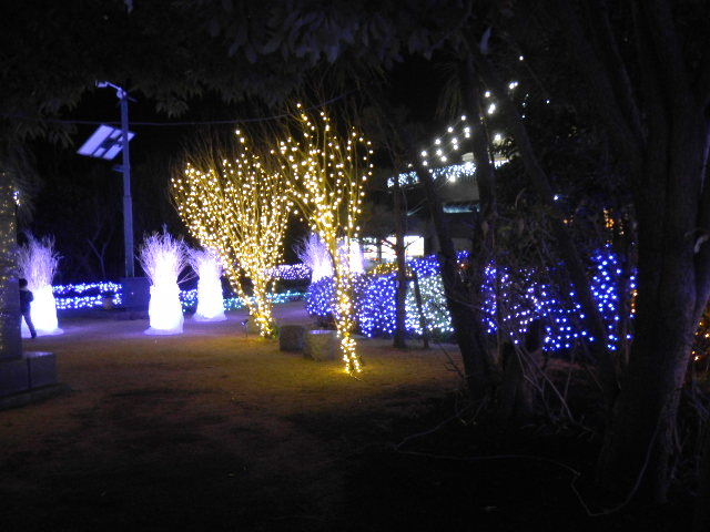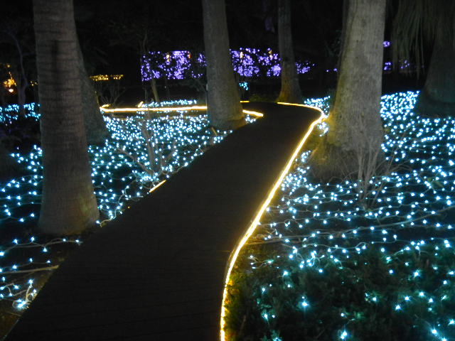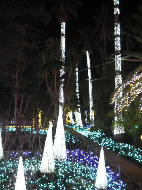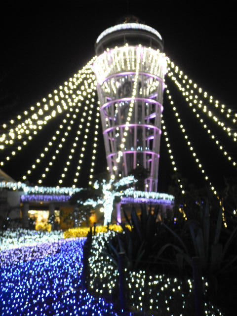 写真以下24枚。狭義の江ノ島(enoshima)の頂上部の庭園の、冬の時期の、イルミネーション(光の飾り)を見ました。