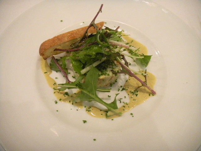 写真以下2枚。前菜。北海道(hokkaido)(日本の、最北端の地方。質の高い魚介類(seafood)の、大規模な産地となっている)産の、毛蟹(蟹)と、地元産の野菜、アボカド(avocado)のサラダ(salad)。
