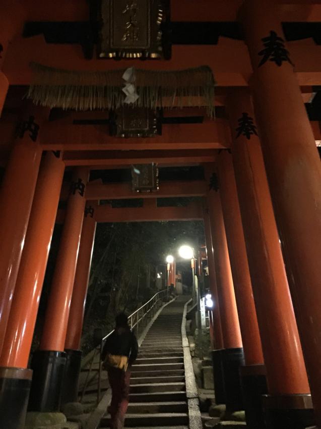 늦은 밤 여우신사에 왔습니다. 영화 게이샤의 추억에 나온 장소.
