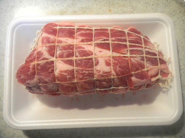 これは、もう一つ作った、焼き豚の、食材の豚肉。国産(日本産)の豚肉の、肩ロース(肩loin)。