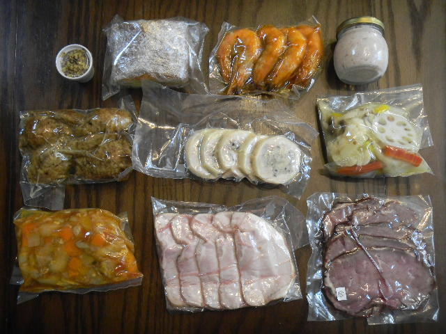 写真以下2枚。私の街の、お気に入りのフランス料理レストランの一つの、お節(osechi)料理。内容は、以下の通り。色々(様々な)茸と干し葡萄のマリネ(marinade)。蛸(北海蛸)の頭と胡瓜のマリネ(marinade)。自家製粗挽き、ソーセージ(sausage)。ラタトゥイユ(ratatouille)。スペイン産の生ハム(ham)、イタリア産のサラミ(salami)、スペイン産のイベリコ(Iberian)豚のチョリソ(chorizo)。フランス、シャラン(Soullans)産、鴨肉(鴨の股肉)の、コンフィ(confit)。北海道(hokkaido)産の帆立(貝)の、スモーク(somoked)。三色オリーブ(olive)のマリネ(marinade)。江戸前コハダ(kohada)のマリネ(marinade)。タスマニア(Tasmania)産、サーモン(salmon)のマリネ(marinade)。サーモン(salmon)のマリネ(marinade)用の、オニオン(onion)、ケッパー(caper)、ドレッシング(dressing)。玉葱のブレゼ(braiser)。玉葱のブレゼ(braiser)用、ロックフォールチーズ(roquefort)ソース(sauce)。ローストポーク(roast pork)。豚のモツ(内臓)と白インゲン豆の煮込み。手羽先(鶏肉)の黒米詰め、マデラ酒(Madeira wine)風味。天使の海老(New Caledonia産海老)の、オレンジ(orange)風味。ローストビーフ(roast beef)。ローストビーフ(roast beef)用、粒マスタード(mustard)。フォアグラ(foie gras)・トリュフ(truffle)入り、鶏肉(地鶏)のガランティ―ヌ(galantine)。豚肉(三元豚)の、リエット(rillettes)。野菜のギリシャ(Greek)風、マリネ(marinade)。パウンドケーキ(pound cake)。レストラン自家製の、パン(パンの内の一つは、海藻(seaweed)入りのパン)。