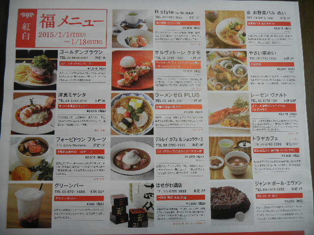 表参道(omotesando)hills(下の補足説明参照)の広告から。。。表参道(omotesando)hillsの、飲食店の、手頃な値段の、正月メニュー(menu)。