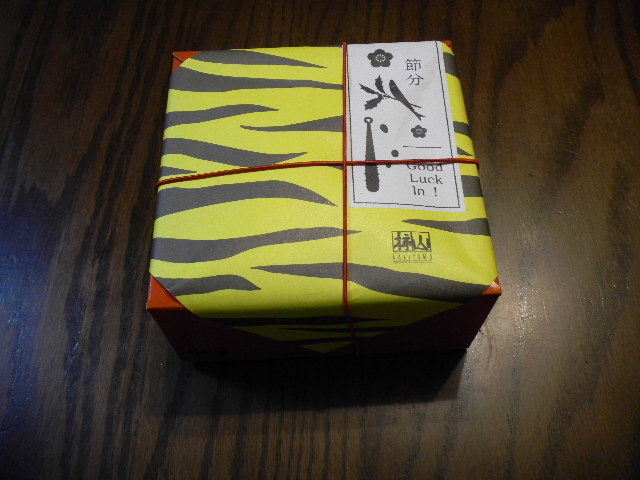 写真以下2枚。おまけ(年末年始の食べ物とは、関係がありません)。柿山(kakiyama)(東京都心(赤坂(akasaka))に、本店(本社)がある、おかき(okaki)・煎餅(senbei)店(おかき(okaki)・煎餅(senbei)会社)の、節分(setsubun)時期の、製品。箱の中に、煎餅(senbei)・おかき(okaki)と、節分(setsubun)用の、豆が入っています。煎餅(senbei)・おかき(okaki)は、(主として)米から作られた、日本の、伝統的なスナック(snack)菓子です。日本では、伝統的に、節分(setsubun)(2月の初め)に、「鬼(oni)は、外(soto)、福(fuku)は内(uchi)」(意味は、「鬼(oni)は外へ、福(幸運・幸福)は中へ」と言う意味)と言いながら、節分(setsubun)用の、豆(炒った大豆。食べる事が出来ます)を、家の中から家の外等に、撒く風習があります。「鬼(oni)」は、「鬼」と漢字で書くと、もしかしたら、韓国語に翻訳される際に、「お化け」とか、「幽霊」とかに訳されてしまうかもしれませんが、妖怪(yokai)(日本で、昔から言い伝えられている、モンスター(monster)の総称)の一つで、代表的な、妖怪(yokai)の一つです。