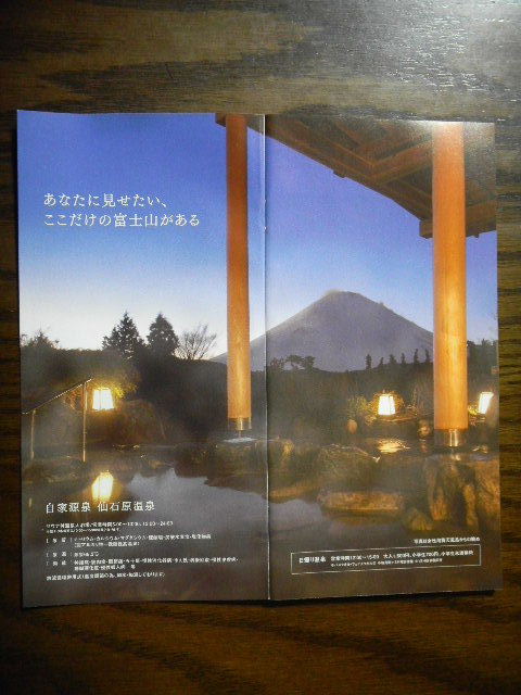 写真以下4枚。このホテルの、女性用の、共同温泉風呂の、温泉露天(野外)風呂からの、富士山の景色。このホテルは、共同温泉風呂の、温泉露天(野外)風呂からの、富士山の景色が自慢のホテルです。男性用の、共同温泉風呂の、温泉露天(野外)風呂よりも、女性用の、共同温泉風呂の、温泉露天(野外)風呂の方が、富士山が、よく見えますが、男性用の、共同温泉風呂の、温泉露天(野外)風呂からも、十分に、富士山の、美しい景色を楽しむ事が出来ます。この時は、二日目(この日)の昼頃から、だんだんと雲が増えて来たものの、初日、二日目(この日)ともに、天気に恵まれ、このホテルの、温泉露天(野外)風呂から、初日、二日目(この日)ともに、富士山の、素晴らしい景色を堪能しました(この時は、初日、二日目(この日)ともに、温泉露天(野外)風呂から、以下4枚の、パンフレット(leaflet)等の写真よりも、綺麗に、富士山が見えました)。ちなみに、この時の初日は、午後3時頃、ホテルにチェックイン(check-in)してから、夕方6時位までの、ほとんどの間、温泉露天(野外)風呂から、富士山の、素晴らしい景色を楽しんだりしながら、のんびりと、(ホテルの)共同温泉風呂に入り、この日(この時の、2日目)の朝は、朝食の前と、朝食の後、2回、共同温泉風呂に入りました。