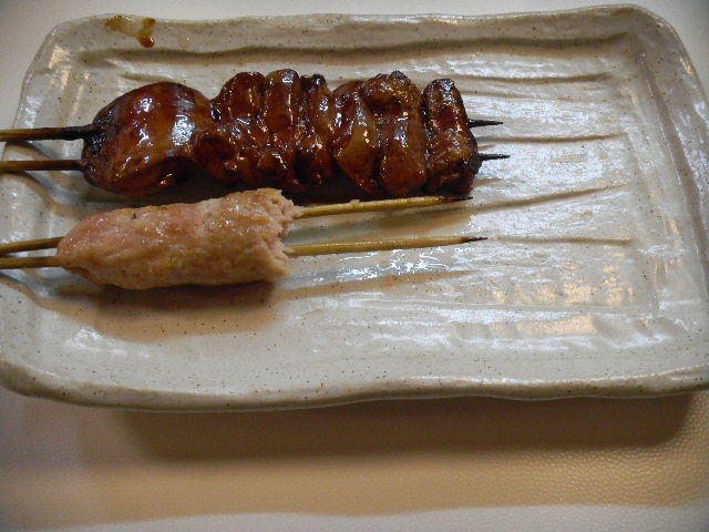 写真以下2枚。私の街の、北の隣街繋がりで、昨日、仕事の終わりに、仕事の用事で、私の街の、北の隣街を訪れた後(昨日は、仕事は、早目に終わりました)、私の街の、北の隣街の、お気に入りの、焼き鳥(yakitori)食堂で食べた、昨日の夕食の、極、一部。焼き鳥(yakitori)は、日本の、鶏肉を中心とした串焼き料理です。焼き鳥(yakitori)自体、庶民的・大衆的な食べ物ですが、この焼き鳥(yakitori)食堂は、焼き鳥(yakitori)食堂の中でも、特に、庶民的な雰囲気の方の、焼き鳥(yakitori)食堂です。日本では、焼き鳥(yakitori。鶏肉串)食堂の多くは、庶民的な居酒屋の一種とみなされていますが、この店も、その様な感じの店です。この、焼き鳥(yakitori)食堂の、焼き鳥(yakitori)(鶏肉串)等は、美味しいです。