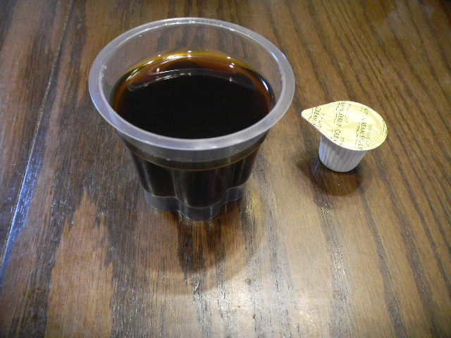 写真以下3枚。昨日、我が家に帰って来て食べた、夕食のデザート(dessert)。昨日の夕食のデザート(dessert)は、とても、簡単に。。。マートで売られている、非常にチープな(とても安い)コーヒーゼリー(coffee jelly)。コーヒーゼリー(coffee jelly)は、日本で、よく食べられている、とても簡単な(とても単純な)、さっぱりとした、デザート(dessert)・おやつです。