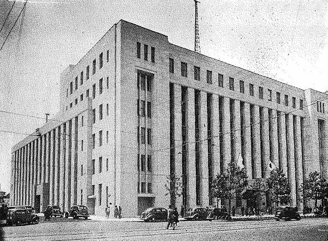 写 真は、借り物。NHKの、現在の、NHK放送centerに該当する施設の、先代の建物(1939年頃に撮影された写真)。東京都心部でも、中心的な地域 に位置していました。1938年完成。設計は、山下 寿郎(yamashita toshirou)(1888年生まれ。1983年に亡くなる。1920年代から1970年代初め頃にかけて活躍した、日本の、近代・現代、建築家)が手 掛けました。NHK(1925年に、ラジオ放送を開始)は、1940年に開催される予定であった、東京夏季Olympicsに合わせるように、本格的な、 テレビ放送を、1940年に開始する予定でしたが、それに合わせるように、1938年に建てられた物です(wikiを参考にしました)。結局、戦争の影響 により、1940年に開催される予定であった、東京夏季Olympicsは中止となり、NHKによる、日本初の、本格的な、テレビ放送の開始は、1953 年まで、東京夏季Olympicsの開催は、1964年まで、待たなければなりませんでした。