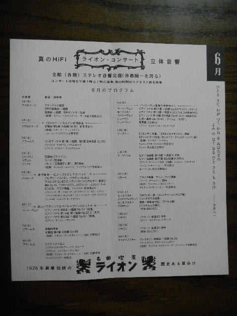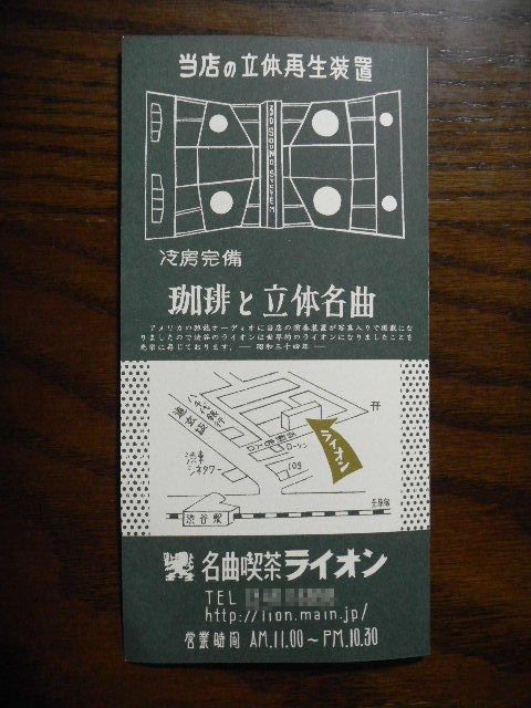 渋谷 (shibuya)(渋谷(shibuya)駅周辺)にある名曲喫茶(meikyoku kissa)、「Lion」は、現在、日本、及び、東京に残っている、数少ない、名曲喫茶(meikyoku kissa)の一つです。「Lion」は、1926年に創業しました(建物の外装及び内装のデザイン(design)は、全て、「Lion」の創業者であ る、「Lion」の、初代の、オーナー(owner)兼店長が、自ら、手掛けました)。「Lion」の、初代の建物は、第二次世界大戦末期(1945年) の、アメリカ軍の空襲により、全焼しましたが(渋谷(shibuya)駅周辺も、第二次世界大戦末期の、アメリカ軍の空襲により、非常に、大きな被害を受 けました)、「Lion」の建物は、1950年に、(1926年に建てられた)初代の建物と同様の、外装と内装のデザイン(design)で再建され、 「Lion」は、1950年に営業を再開し、現在へ至っています。