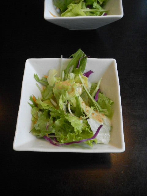 量が、とても少ないですが、付け合わせ(side dish)の、サラダ(salad)。一人、一皿ずつ。