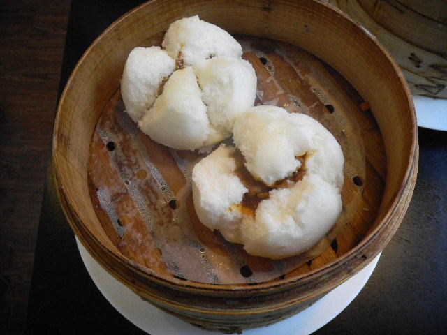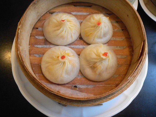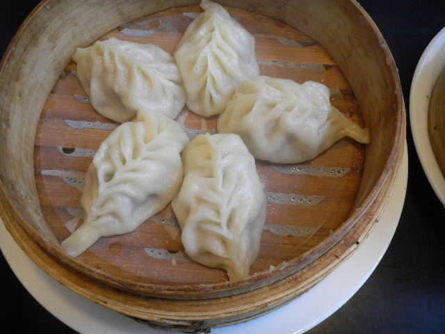 写真以下2枚。普通の小龍包(xiaolongbao)。入れ物が2段重ねとなっており、全部で、6個です。