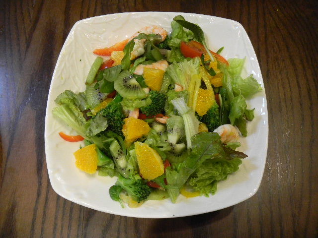 写 真以下、我が家で食べた、この日の夕食(二人分)。ただし、これ全部を、この夕食時に、全て食べた訳ではなく、余った分は、この翌日の、朝食と夕食の、一 部として食べました。この他、細かな(小さな)、サイドディシュ(side dish)の、おかずを、幾つか食べました。なお、この夕食時は、飲み物は、私は、主に、ワイン(wine)とビールを飲みました。