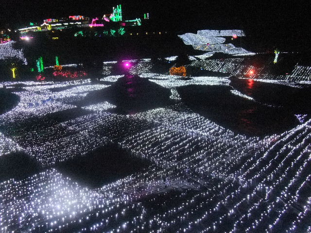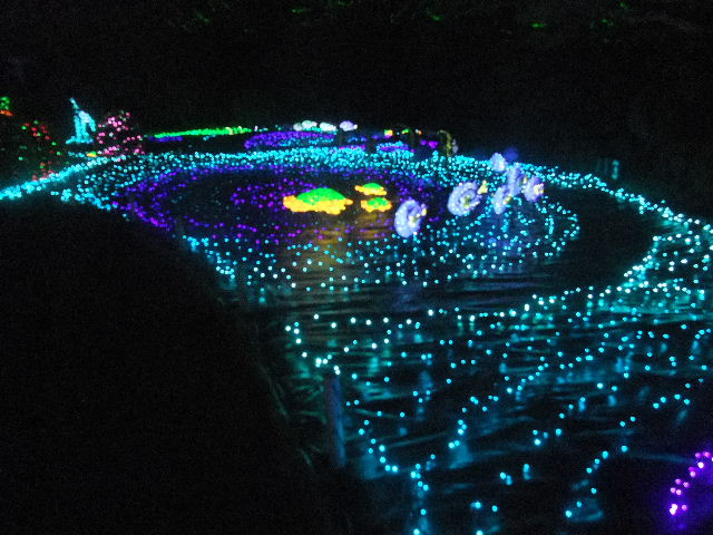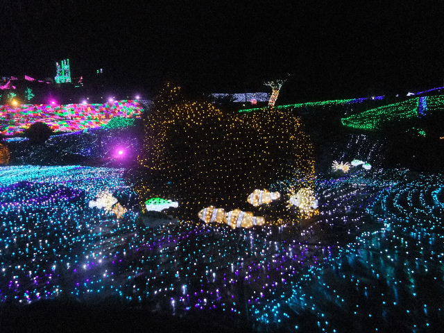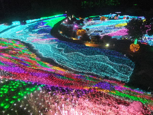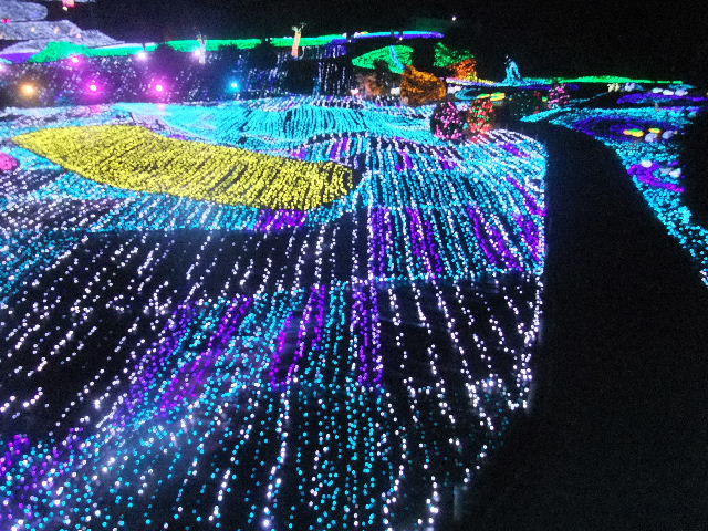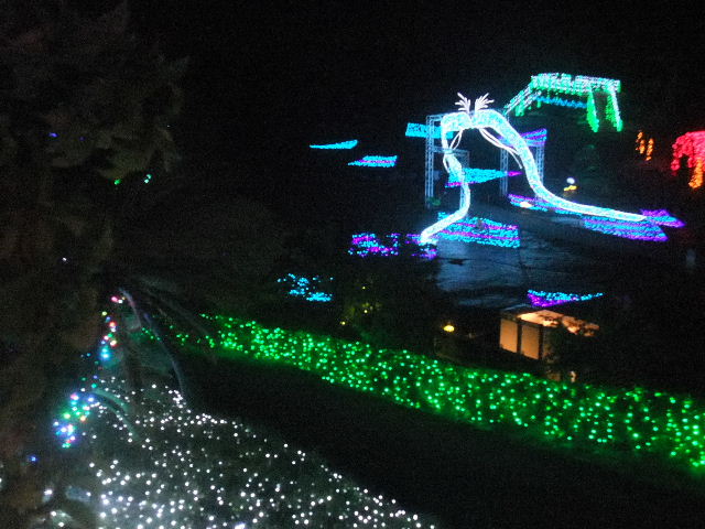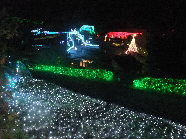 この日、宿泊した、伊豆(izu)高原(下の補足説明参照)のオーベルジュ(auberge)で、夕食を食べた後は、伊豆(izu)ぐらんぱる(granpal)公園で、イルミネーション(光の飾り)を見ました。