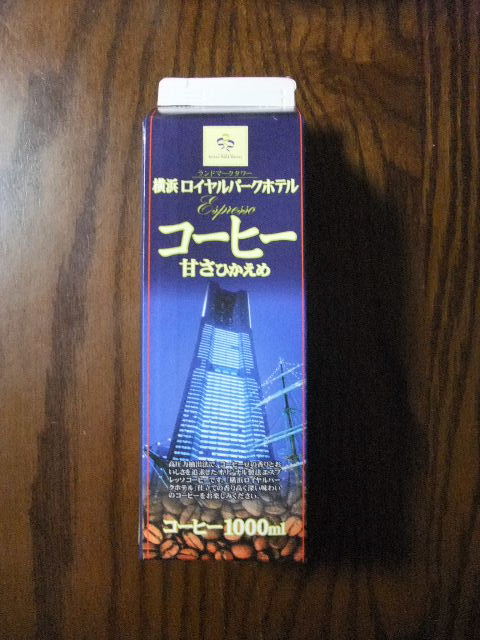 マート等で、手頃な値段で売られている、Yokohama Royal Park Hotelブランド(brand)の、大量生産の、冷たい、コーヒー(coffee)(espresso)商品(これは、砂糖入りの物)。マート等で売られている、この種の、大量生産の、冷たい、コーヒー(coffee)商品としては、上質な物となりますが、手頃な値段です、砂糖無しの、冷たいコーヒー(coffee)(espresso)や、紅茶等、これと同系統の、マート等で、手頃な値段で売られている、Yokohama Royal Park Hotelブランド(brand)の、大量生産の飲み物製品は、様々な物があります(何故か、製造しているのは、大坂(東京に次ぐ、第二の都市圏人口を有する都市。日本の西部に位置する)の会社w)。