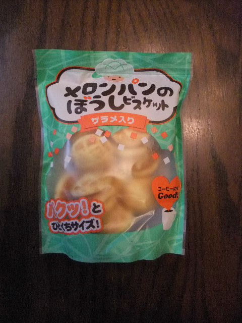 メロン(melon)パン味の、クッキー(cookie)。子供向けの、製品。