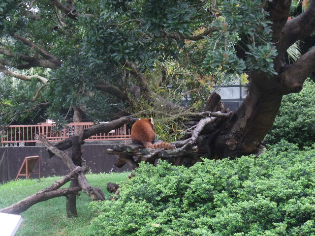 写真7枚。熱川(atagawa)バナナ(banana)ワニ(鰐)園の、レッサーパンダ(red panda/lesser panda)の、展示風景例。