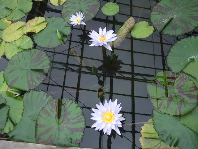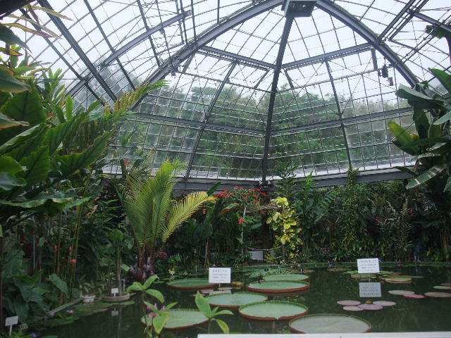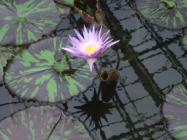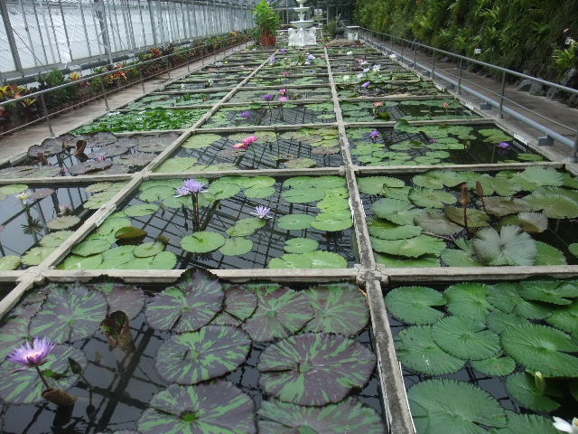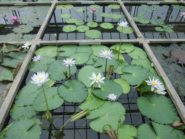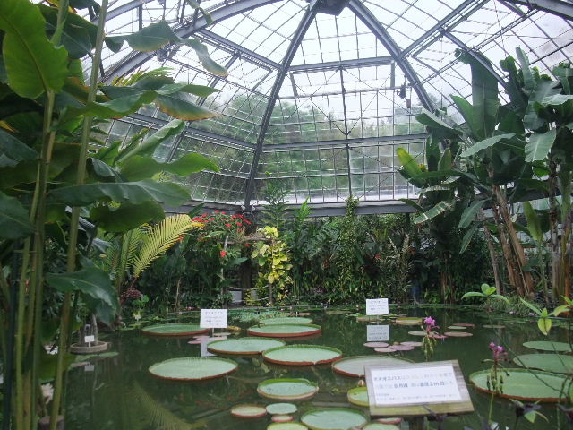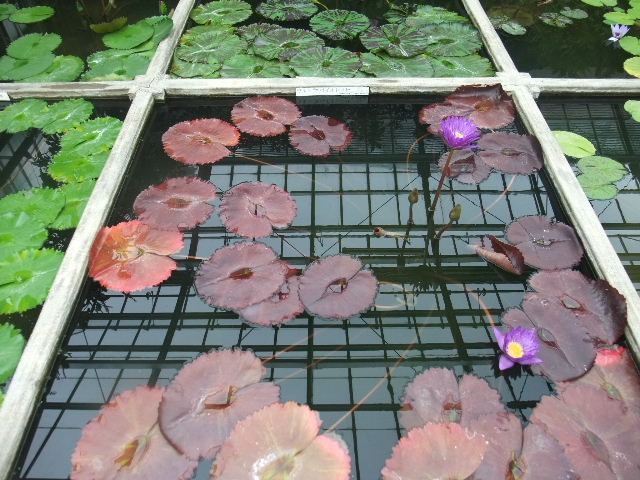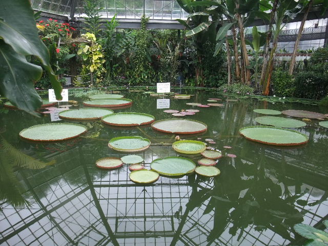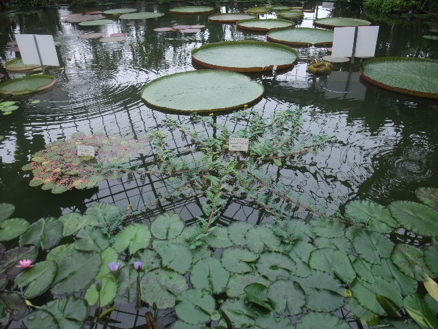 写真以下6枚。オオオニバス(Victoria amazonica)。世界最大の葉を持つ、睡蓮(water lily)