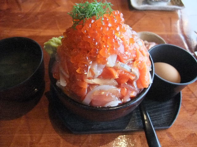 彼女が食べた、小さな、サイズ(size)の、海産物(seafood)丼。