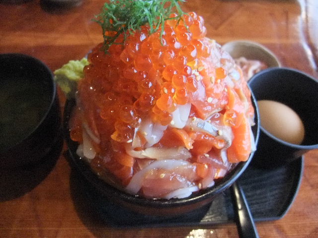 写真以下4枚。私が食べた、海産物(seafood)丼。