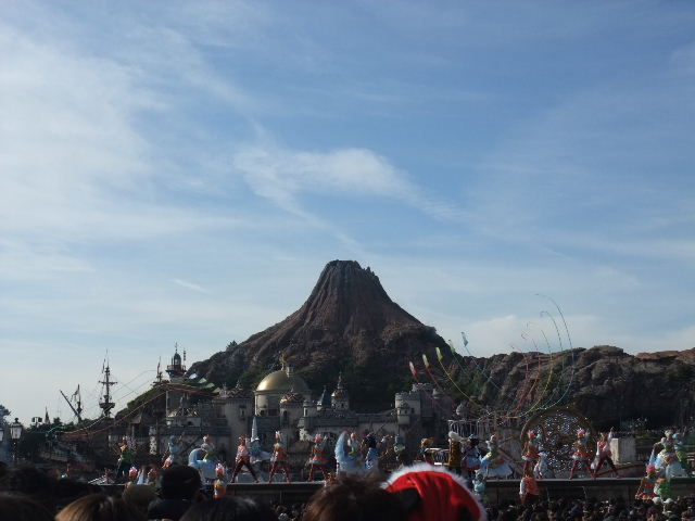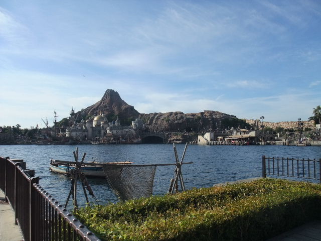 写真以下9枚。正面に見えるのは、プロメテウス(Prometheus)火山。東京disney seaの象徴的な建造物となっています。その手前に見える、大きな建物は、コロンブス(Columbus)やマゼラン(Magellan)が活躍した、冒険や発見に沸く、大航海時代の、南ヨーロッパの要塞と言う設定の建物で、東京disney seaで目立つ建物の一つとなっています。