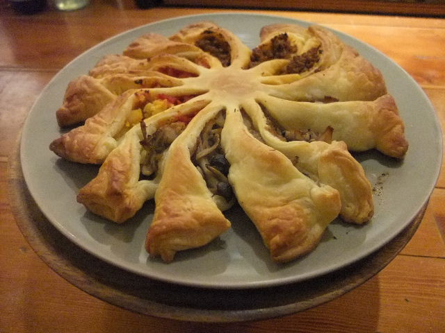 写真以下2枚。4種類の、食事パイ(pie)。二人で分けて食べました。