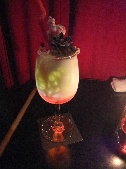 これは、彼女が遊んだ物w サンタ(Santa Claus)は、彼女が、最初に(一杯目に)飲んだカクテル(cocktail)の上に載っていた物ですw
