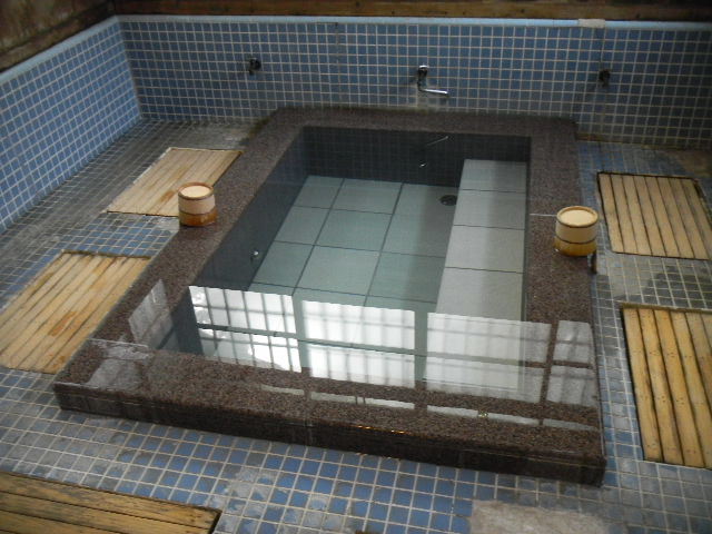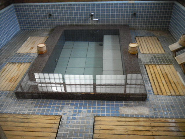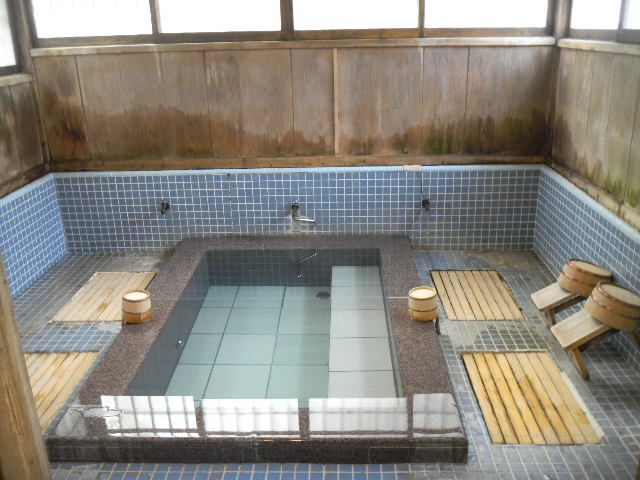 写真以下4枚。この温泉旅館の、二つある、屋内(室内)共同温泉風呂の一つ。