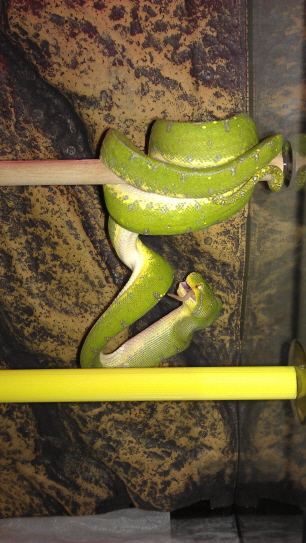 グリーンツリーパイトンはインドネシア地域に棲息する蛇で 私が飼育する グリーンツリーパイトンは