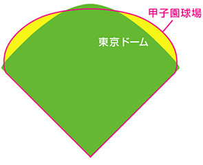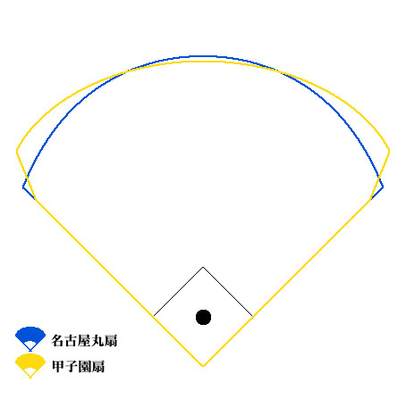 나고야 돔과 비교해도 코시엔 구장은 그랜드 면적이 넓습니다.