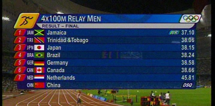 ↑육상·남자 4×100 m릴레이 4위         북경 올림픽에서는 3위로동메달