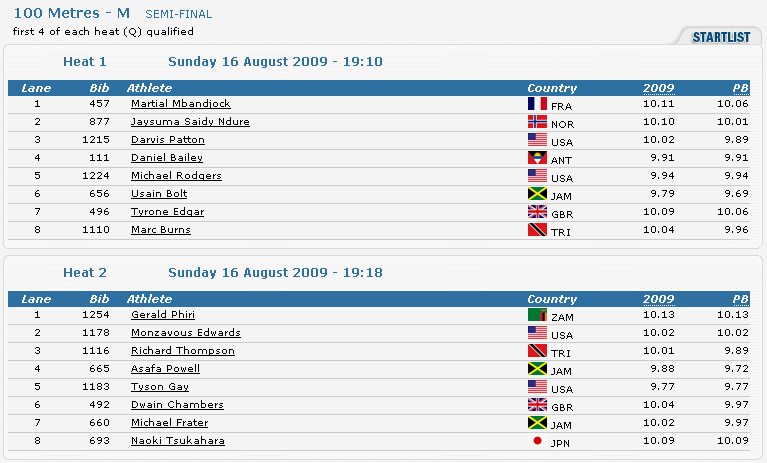 ↑육상 100 m로 세계의 베스트 16(준결승)에 흑인안에 유일 일본인이 1명 섞여 있는 w