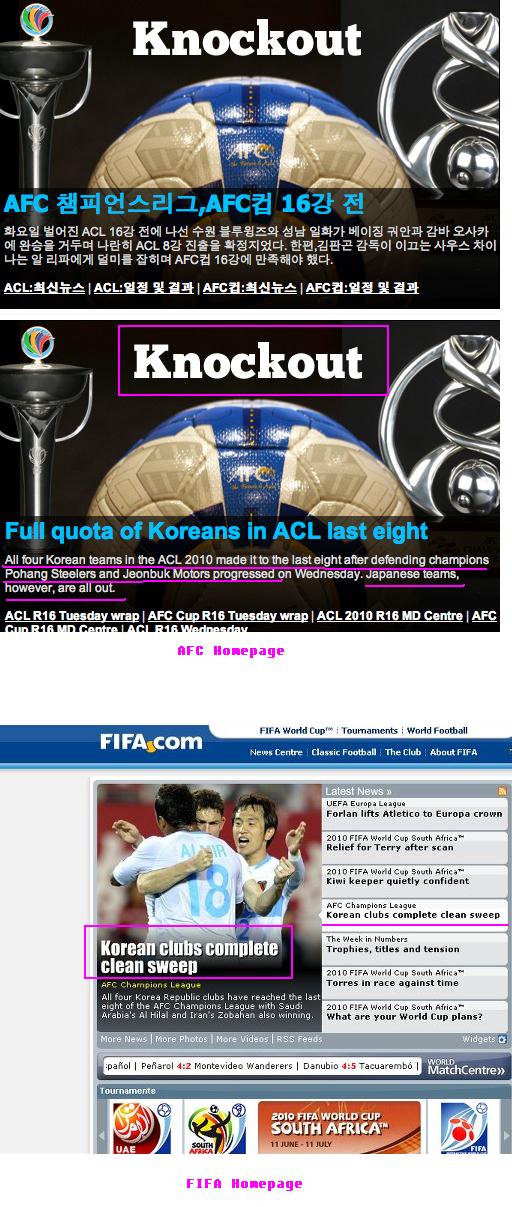 4팀 모두 8강에 진출해버리니 AFC 와 피파홈 메인에서도