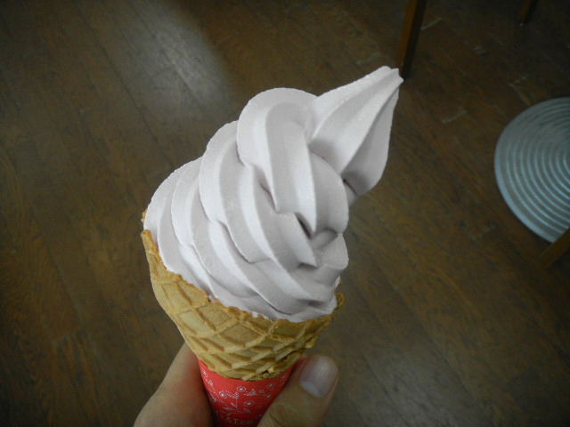写真以下2枚。SA(rest area)の売店で、ソフトクリーム(soft serve)と団子を買って、一個ずつ(団子は、一串ずつ)食べました。