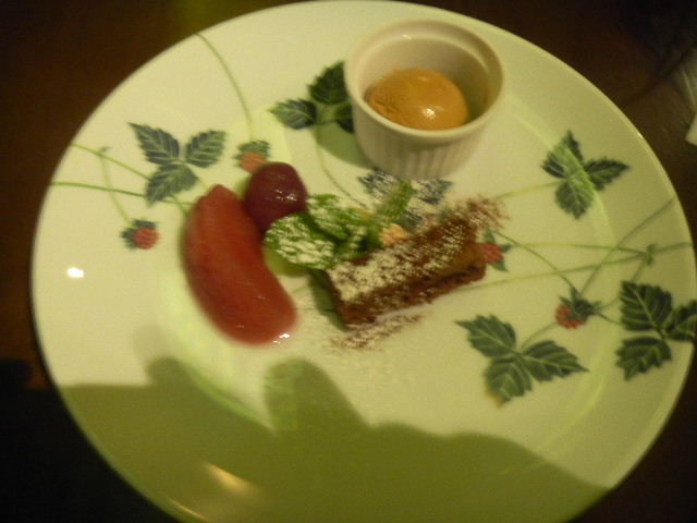 デザート(dessert)。一人一皿ずつ。右上の、アイスクリーム(ice cream)は、カラメル(caramel)の、アイスクリーム(ice cream)です。